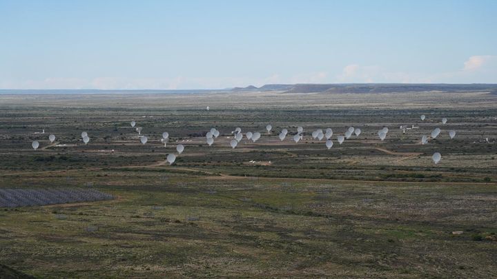 Le site du télescope SKA-Mid et ses premières antennes paraboliques,premières d'une longue série,se cachent dans un site isolé dans le désert du Karoo,composé de roche noire et marron à 1 000 mètres d'altitude,en Afrique du Sud. "On construit un radiotélescope pour observer de quoi l'univers est composé,se réjouit Lindsay Magnus,le directeur du site. On veut voir comment l'univers s'est formé,et comment il évolue. C'est un télescope d'une taille et d'une précision jamais vues auparavant."